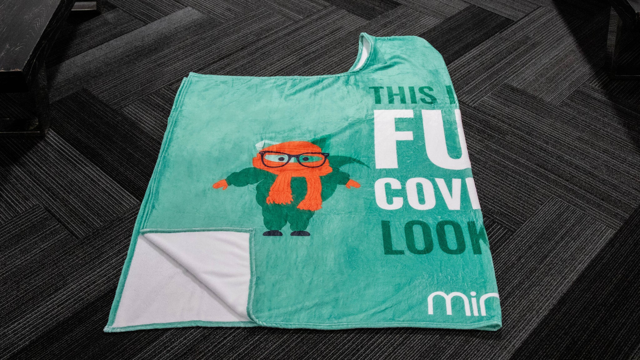 • 1x barber fleece w/ crystal velvet 50”W x 80”H throw blanket